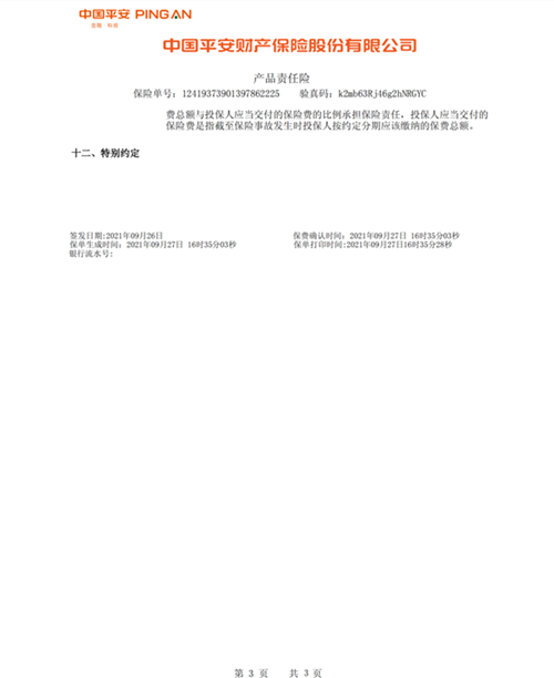 中国平安财产保险股份有限公司保单